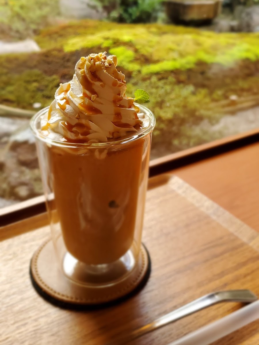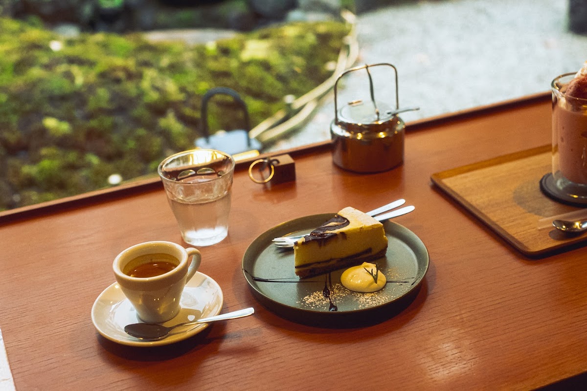As you step inside, the experience transforms. You’re guided to your seat, where removing your shoes is not just a request but a gateway to a distinctly Japanese form of hospitality. The décor strikes a fine balance between modern aesthetics and traditional elements, with tranquil views of a beautifully maintained garden that lend a serene backdrop to your coffee experience.
